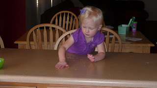 We played on the slip in slide, tons We celebrated Genevieve's 2nd Birthday. She wasn't really into her Birthday this year and we couldn't figure out why. Until that night when she came down with the stomach flu, then it was very clear why she didn't want anything to do with cake, ice cream or even presents. Poor girl! Some of the kids friends can't have diary. I think if my kids couldn't have cheese they might die! They are always begging for cheese when I am grating it. Genevieve is sweeping all the fallen cheese into piles. Genevieve will do whatever it takes to make sure none goes to waste! My parents came to visit and see Maddilyn for the first time. I love the look on Maddi's face. She is really trying to figure her Grandpa out. In all fairness, can you blame her? Grandpa is always making funny faces. Genevieve has become quite the big sister. She loves to help, espcially when I don't need or want her help. One day I walked into the room to find Genevieve changing Maddilyn's butt. Now she changes her babies butts. She is very proud of herself and well she takes care of her babies. That diaper is going no where!Monday, September 10, 2012
